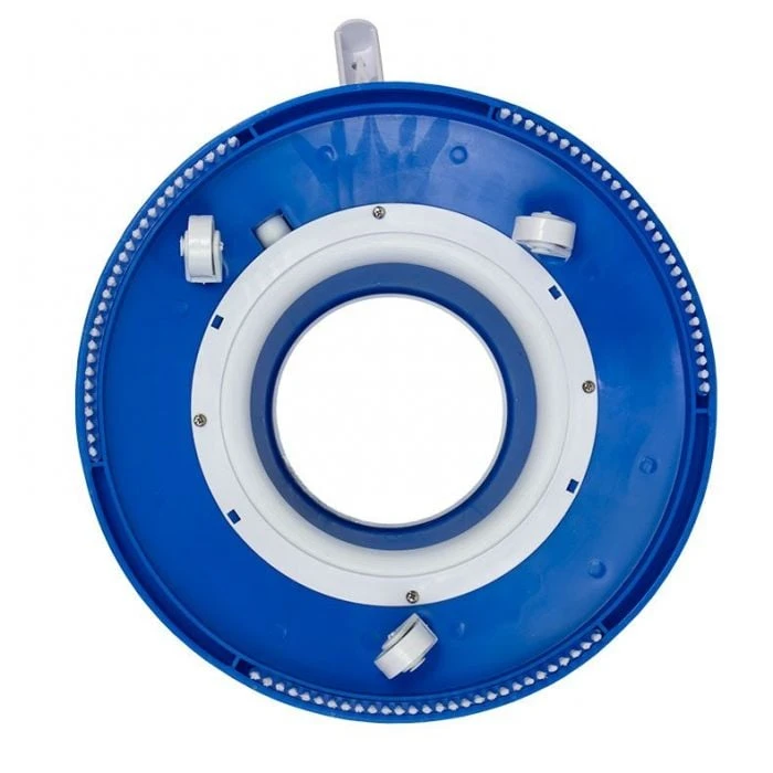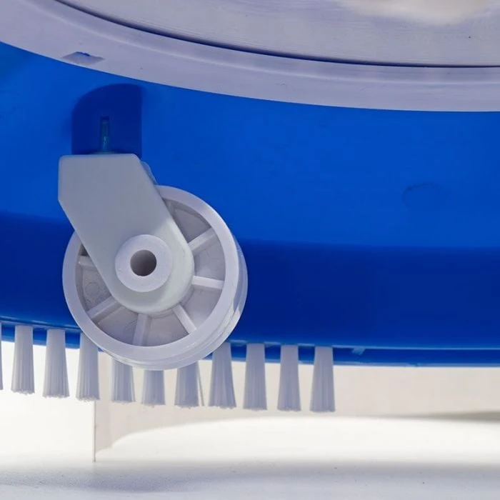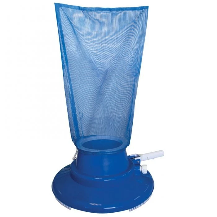 This unique pool leaf vacuum quickly removes leaves, pine needles, bugs and other debris from your swimming pool floor. Water from your garden hose creates a venturi motion that lifts debris into a filter bag as you move vac across pool floor. Features garden hose adapter, filter bag and easy-adapt handle. Fits 1 1/4″ diameter poles. Pole not included.